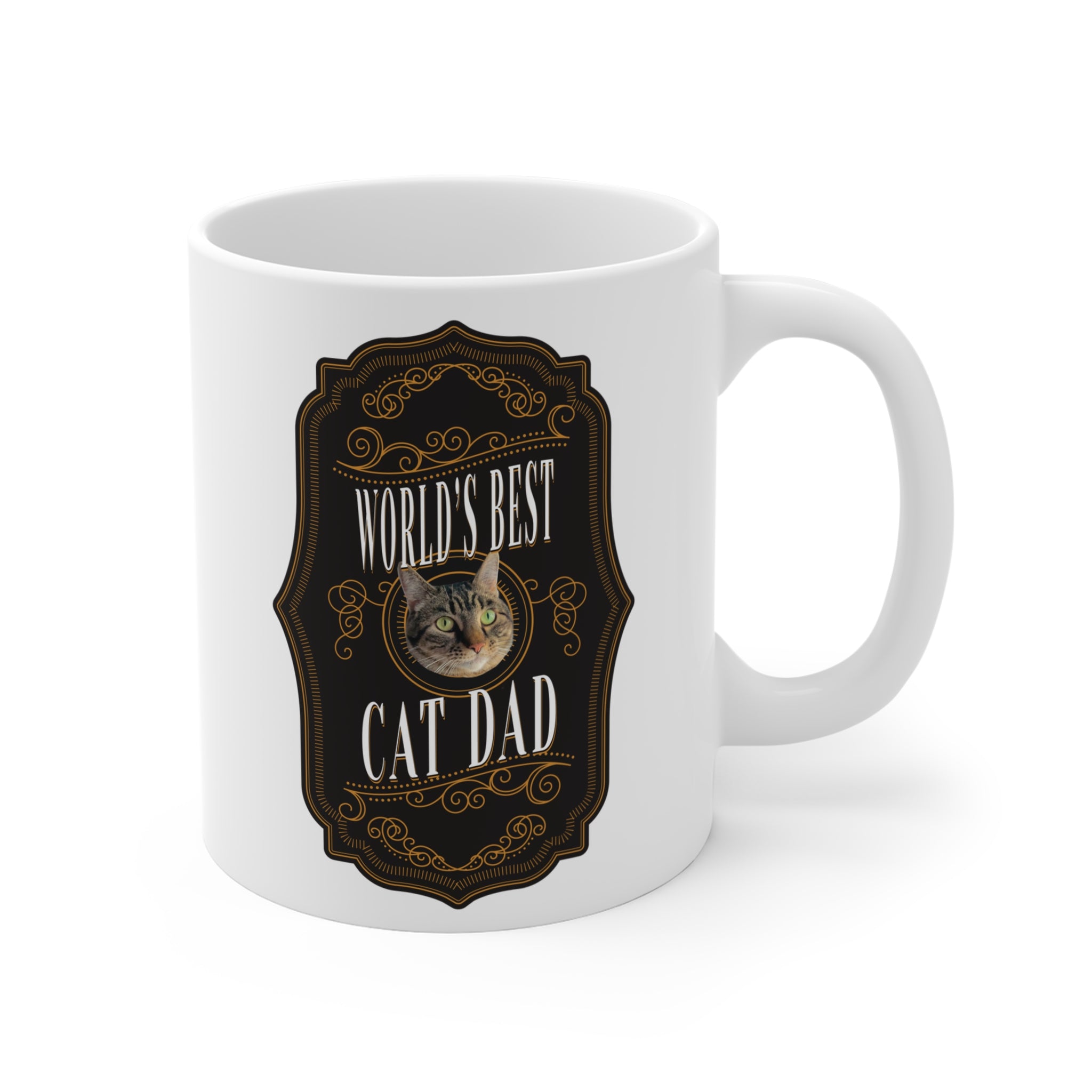 Give the Cat Dad in your life a gift he will actually use and love. This mug features your cat’s face in a bold whiskey label inspired design with the phrase “World’s Best Cat Dad.” Perfect for coffee, tea, or hot cocoa, it’s dishwasher and microwave safe, and guaranteed to make every sip a little more legendary.