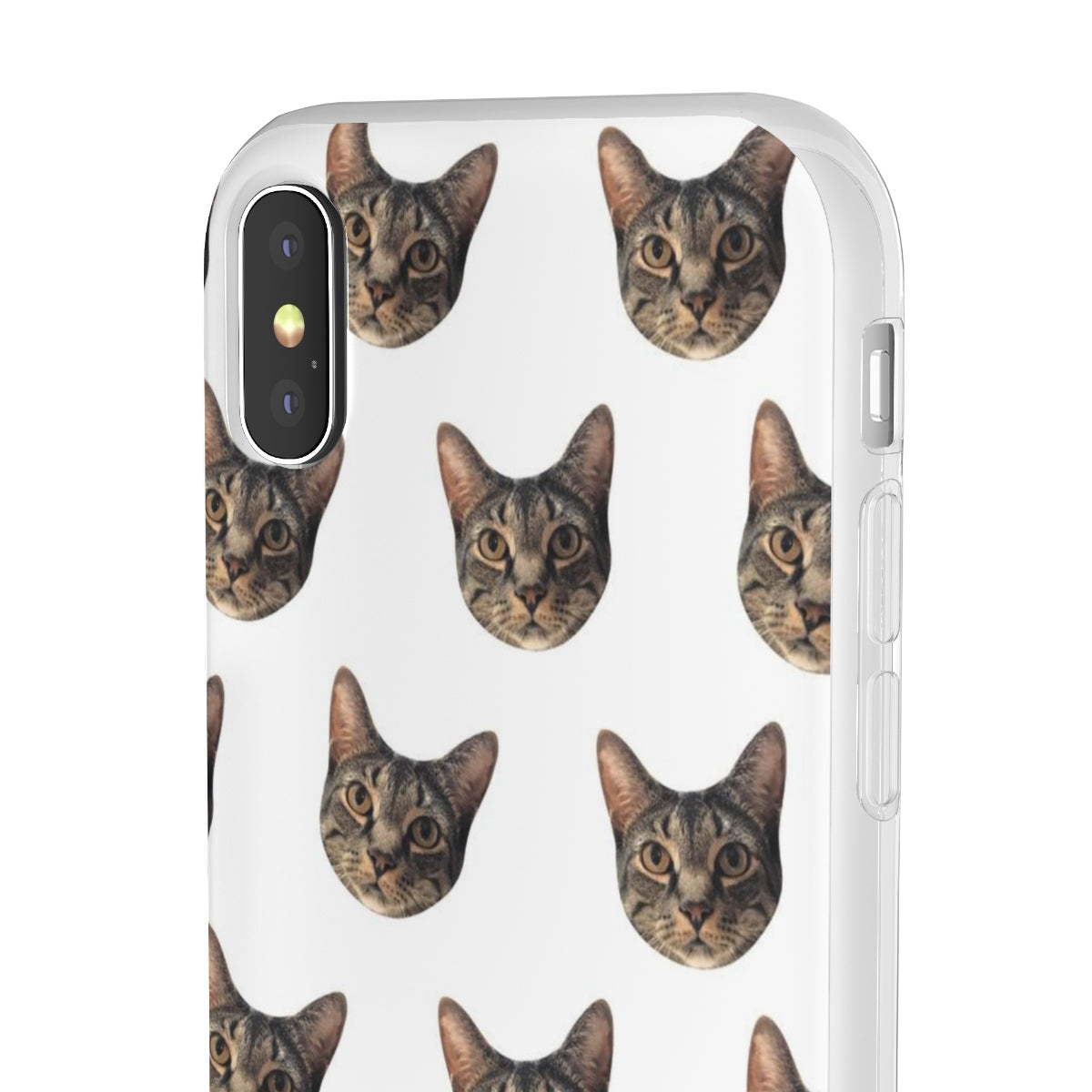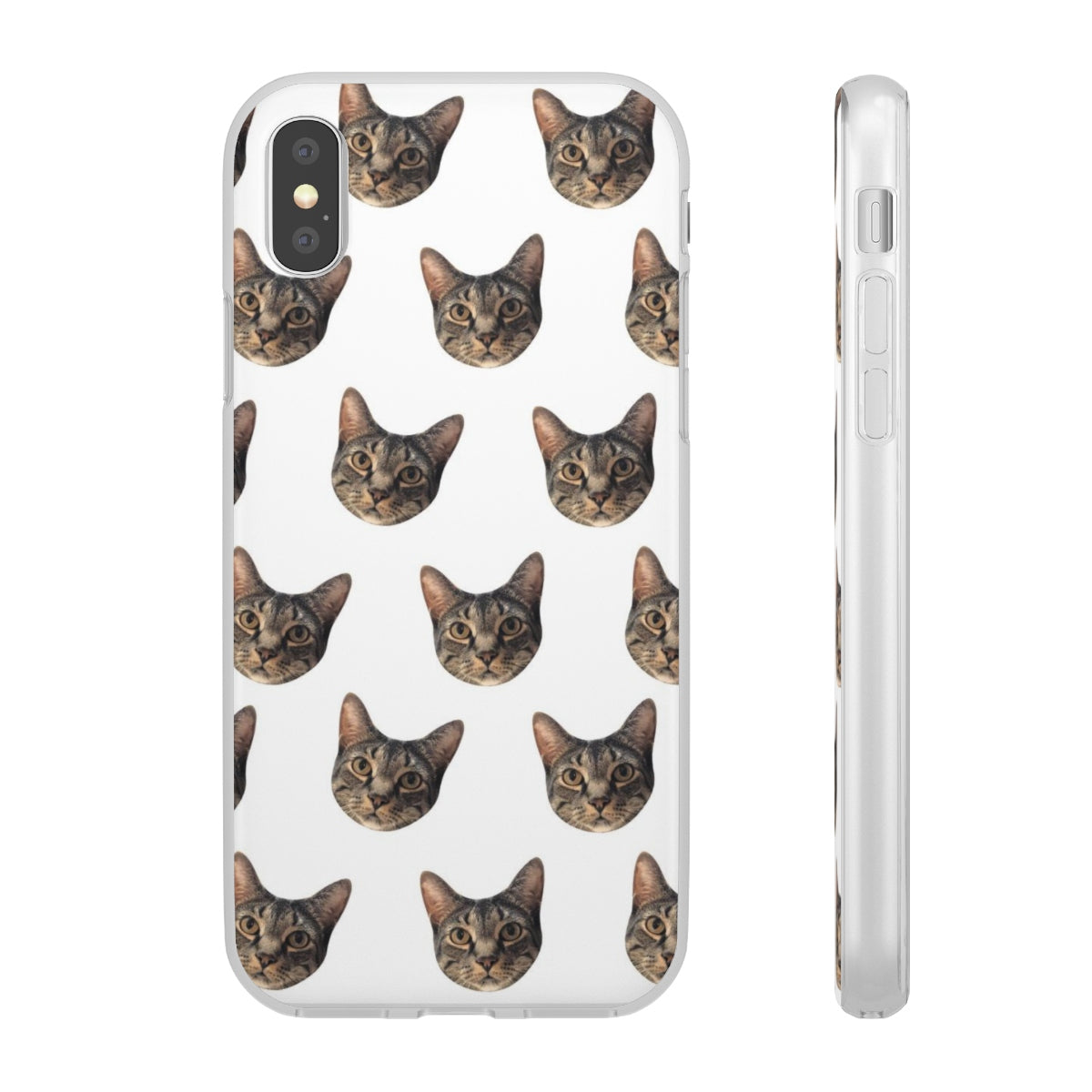Show off your pet like never before with a Custom Cat Phone Case! Custom printed for each customer, your custom phone case will feature a photo of your beloved pet in a repeating pattern. Please note each phone case is clear and does not have a printed background color.