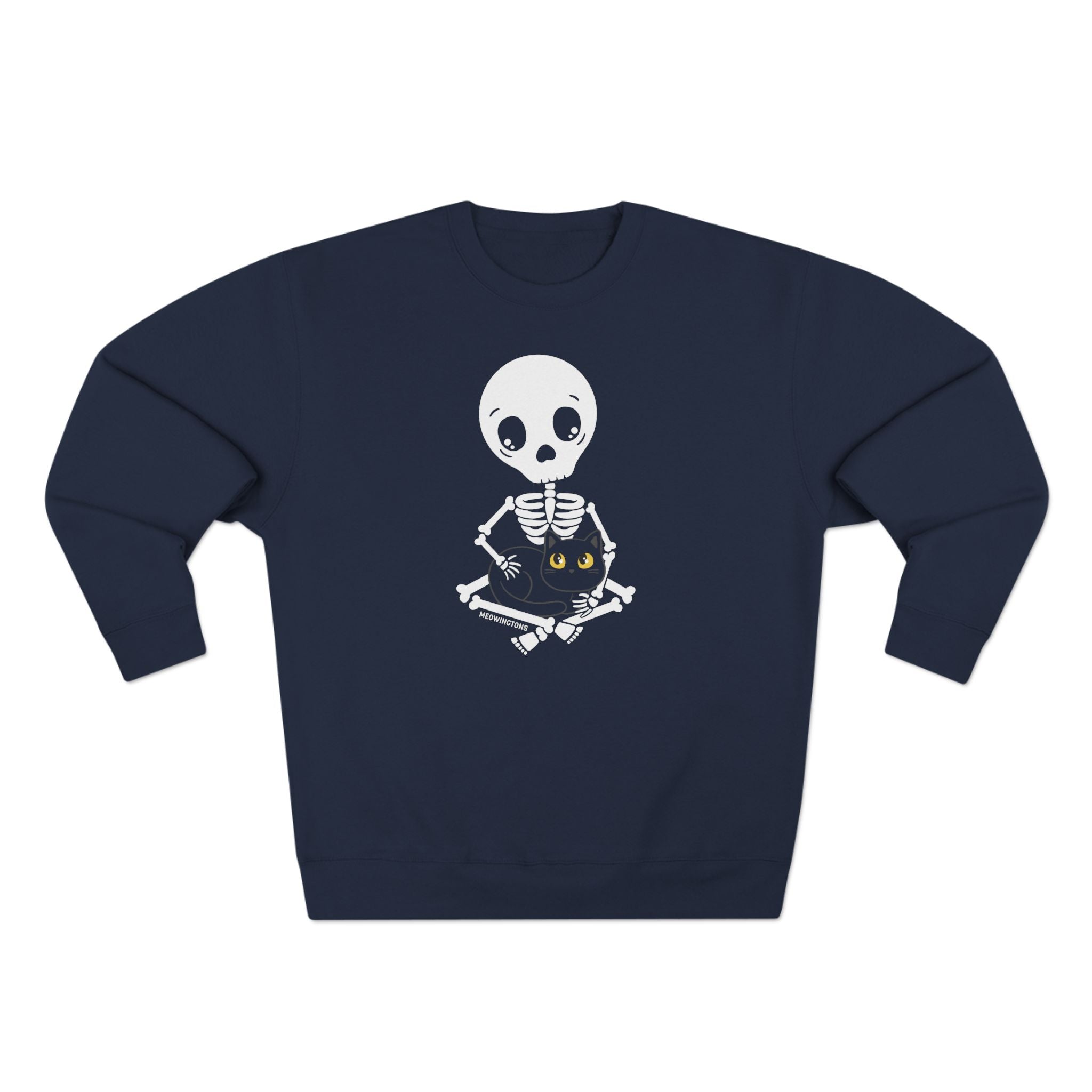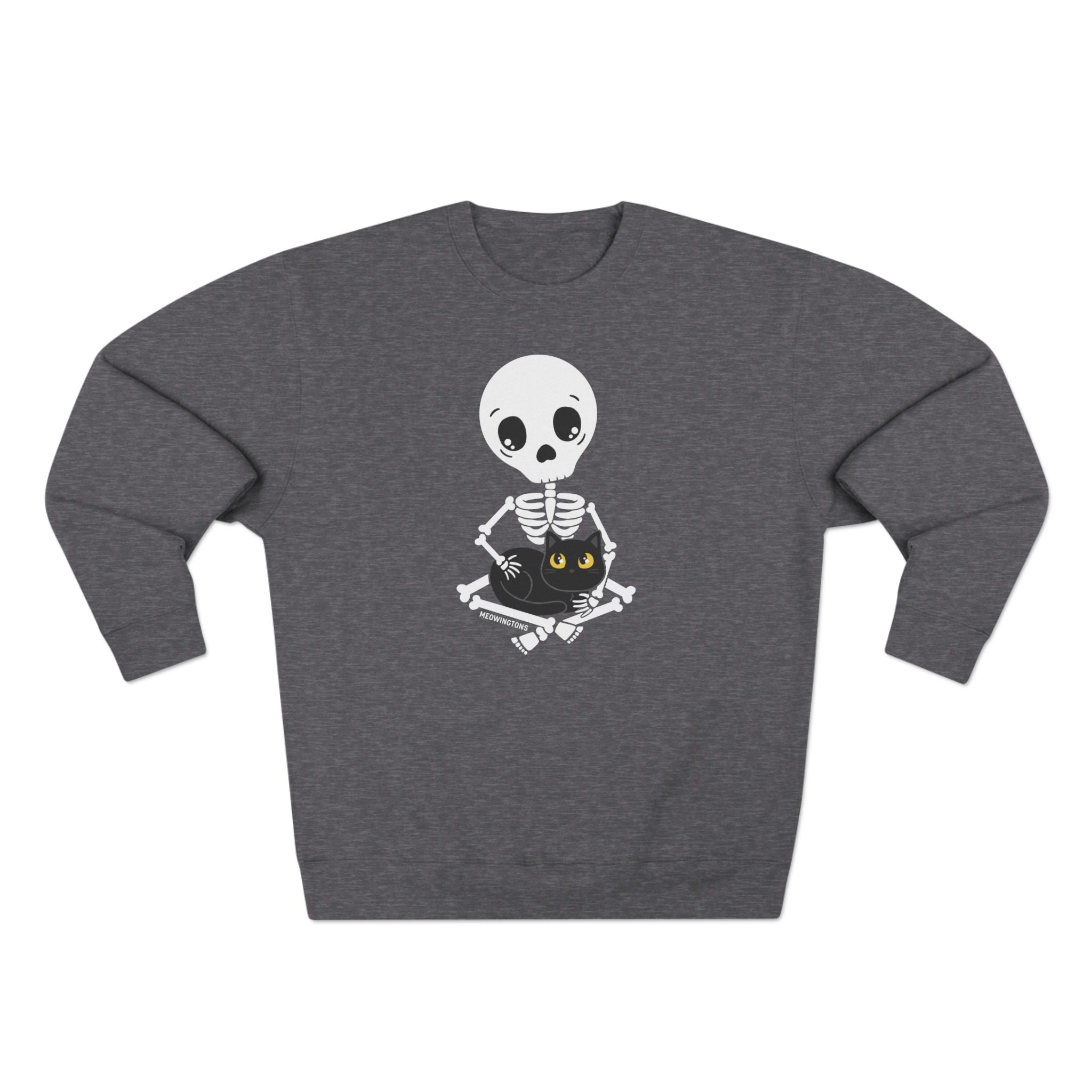 Creep it cute this Halloween with the all-new Friends Forever Skeleton Cat Crewneck Sweatshirt! This limited-edition Halloween sweatshirt features Skullivan the skeleton cozily snuggling up to Smokette, their black cat and best friend. These forever friends will keep you warm on all your autumnal adventures – and beyond – whether you’re crunching fall leaves underfoot or showing off your love for all things Halloween. Pair this creepy-cute crewneck with your favorite cat scarf for an irresistibly adorable look this season!