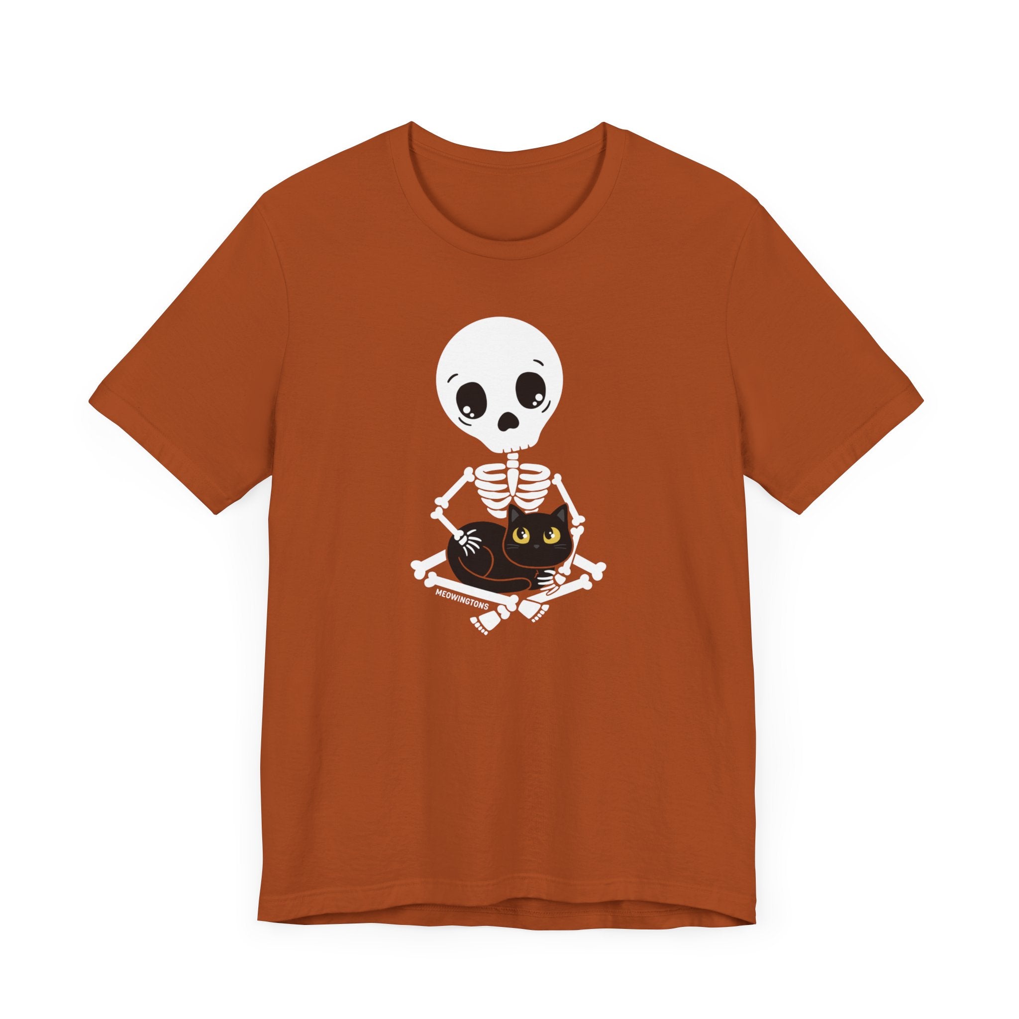 Creep it cute this Halloween with the all-new Friends Forever Skeleton Cat Tee! Each limited-edition Halloween jersey t-shirt features Skullivan the skeleton snuggling up to Smokette, their black cat and best friend. These forever friends will keep you company on all your autumnal adventures – and beyond – whether you’re crunching fall leaves underfoot or celebrating your love for all things Halloween. Pair this creepy-cute Halloween tee with your favorite cat scarf for an unbeatably adorable look this fall!