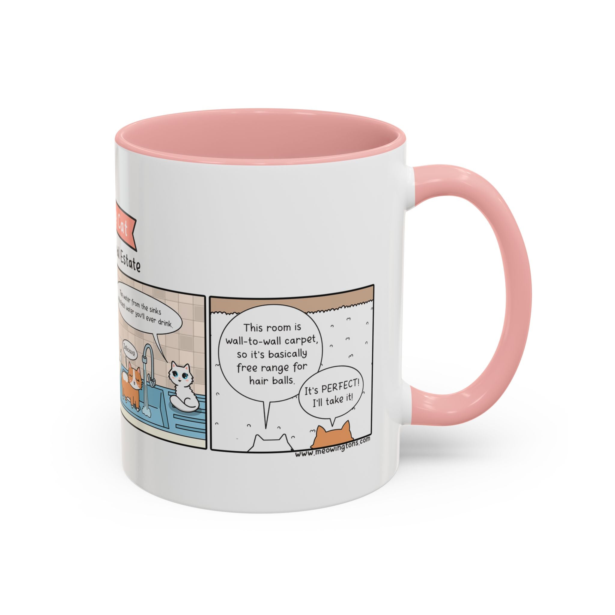 The If Cats Sold Real Estate Comic Coffee Mug is available in the following options: 11oz / Navy, 11oz / Pink, 11oz / Light Blue. Check the product page for current stock availability.