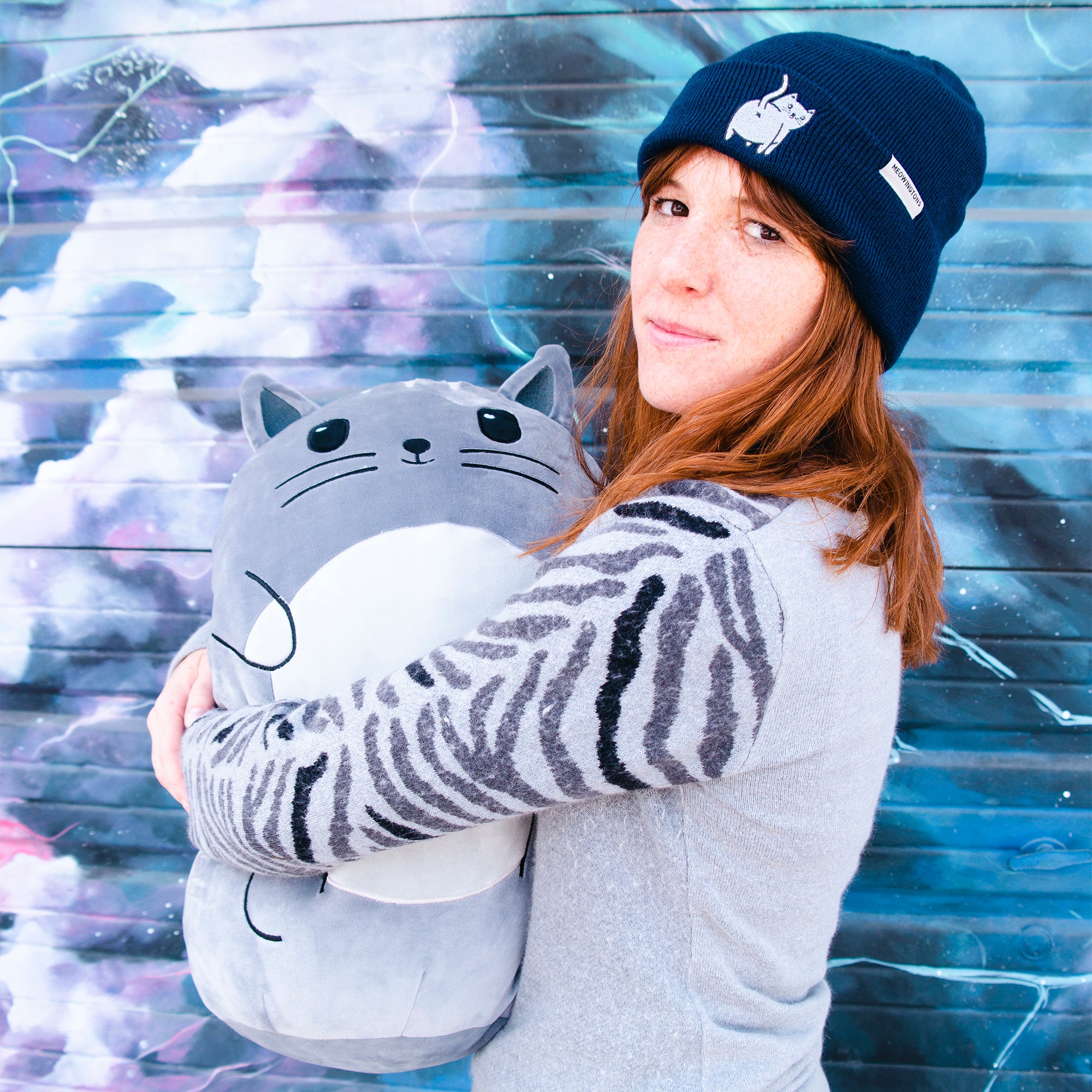 If you’re looking for a cute cat plushie to add to your collection, Milton is more than ready to take that spot. And don't miss out on the dynamic duo of Milton and Millie! Millie the Cat is the co-star of our daily comic and now comes in a matching squishy plush, too! Our model is styling our Milton's Cat Butt Beanie.