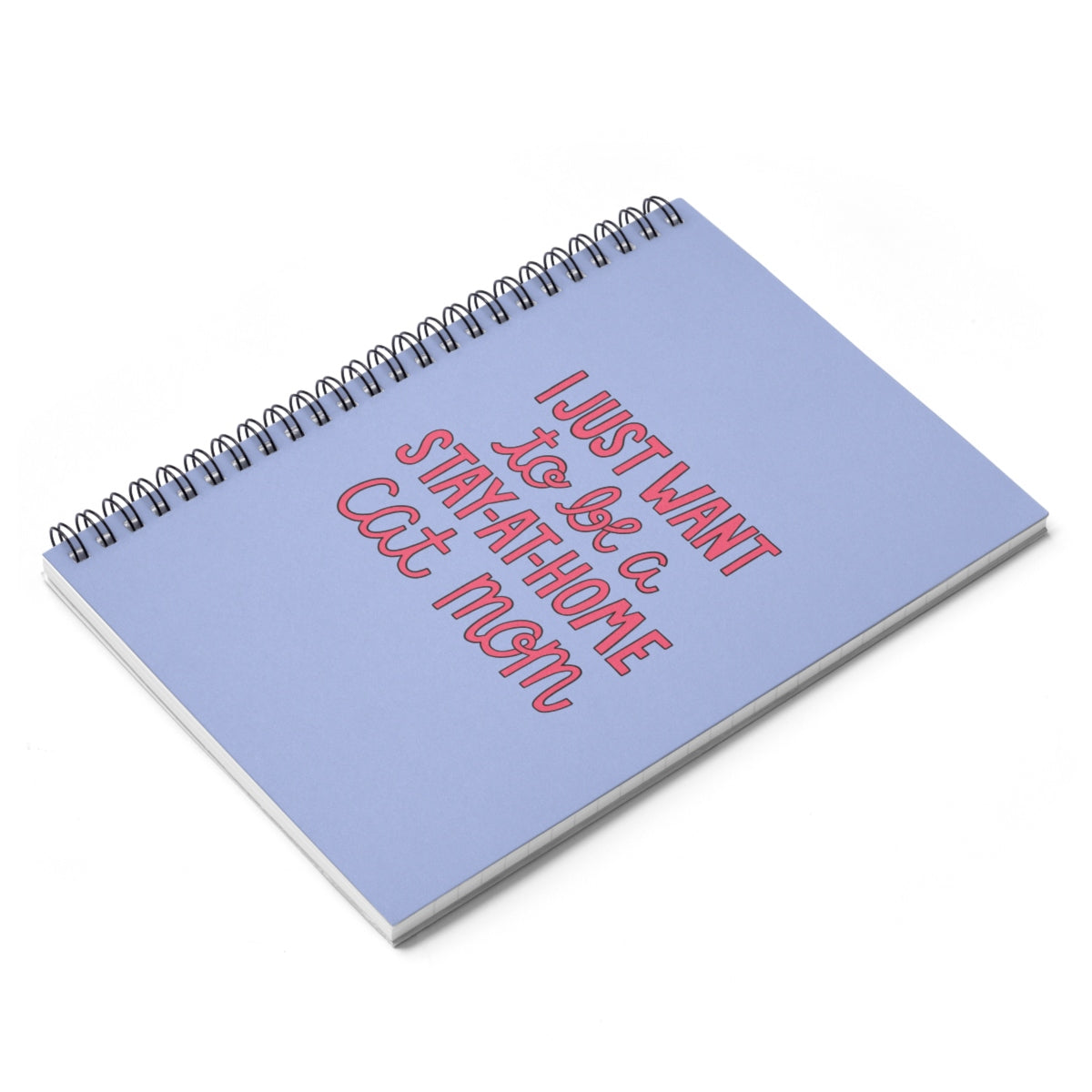 Jot down your notes in a journal with some purrsonality! Featuring a bright, bold graphic print, our Stay-At-Home Cat Mom Notebook is the purrfect place to capture all your thoughts and dreams. Whether you’re dream journaling or taking notes at school, if you’d rather spend your days waiting hand and foot on your spoiled kitty (which is pretty much every day, anyway), this spiral cat notebook is purrfect for you. Featuring 120 rule lined pages, get ready to fill this cat journal with anything you'd like - to-do lists, poems, wherever inspiration takes you! Our Stay-At-Home Cat Mom Notebook features durable spiral binding and sturdy covers, fitting easily into your purse or school bag, it is a great notebook to take on the go. With its bright, colorful text, add a pop of color to your journaling instead of a boring ol’ notebook! And the best part? The Stay-At-Home Cat Mom Notebook will speak your mind so you don’t have to. So what are you waiting for? Get writing!