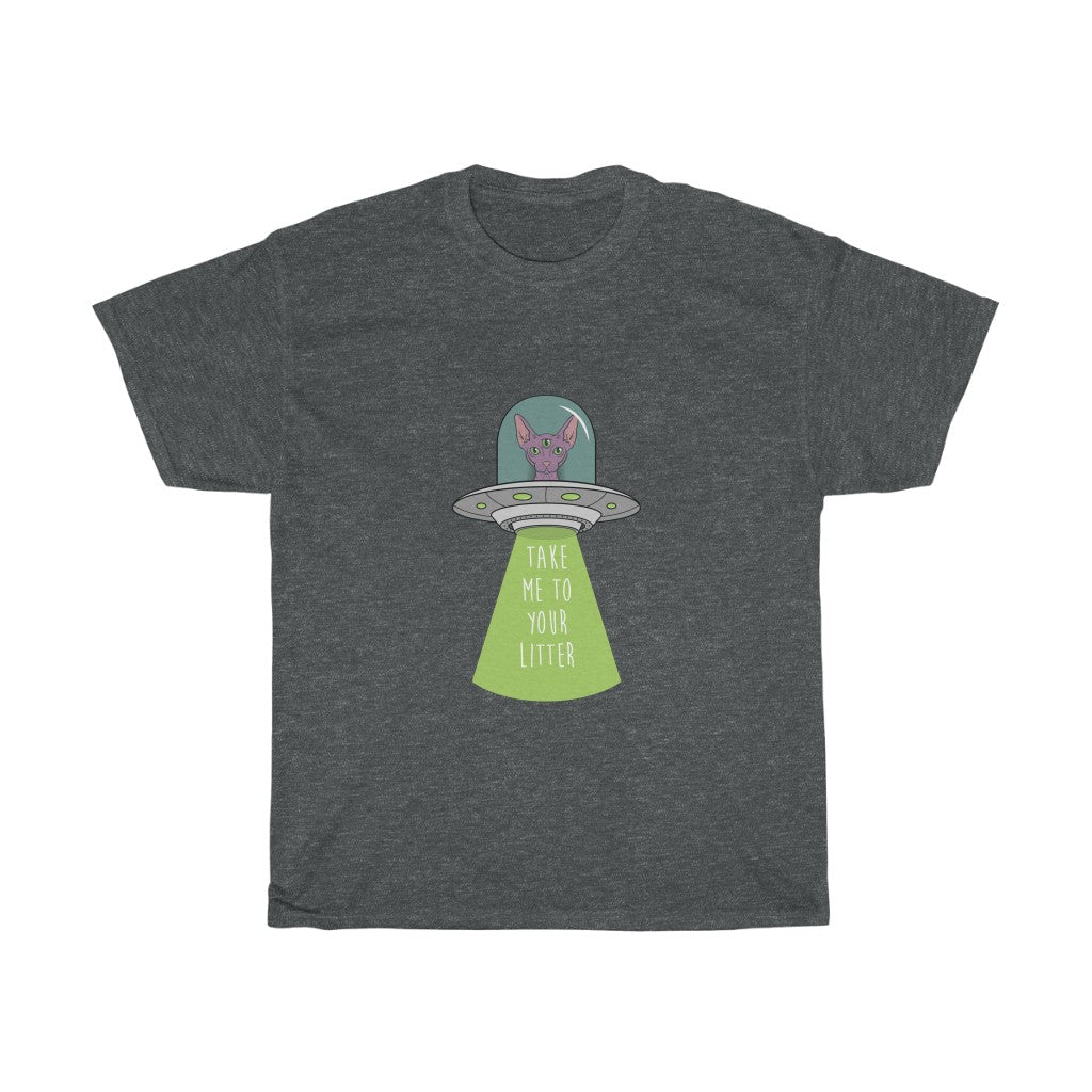 Do you believe? Show the world that the Truth is Meowt There with this Take Me To Your Litter alien cat t-shirt. Featuring a hairless Sphynx cat in the role of our UFF (Unidentified Flying Feline), you can uncover the truth in this fun cat graphic tee. Our Take Me To Your Litter comes in four color options, Classic White, Sport Grey, Dark Heather. Each premium alien cat print is individually made to order for each and every customer. Each shirt is constructed of 100% cotton for a light, breathable fit, so you’re always comfortable no matter the situation: whether you’re watching the X-Files or investigating crop circles in the litter box.